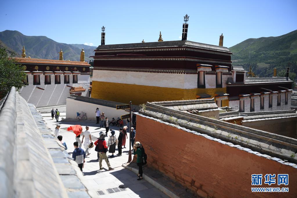 7月12日,游客在拉卜楞寺參觀。新華社記者 陳斌 攝