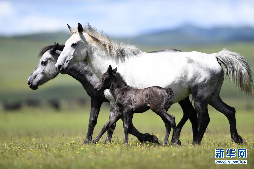 這是7月15日在甘肅瑪曲縣河曲馬場(chǎng)拍攝的河曲馬。新華社記者 杜哲宇 攝