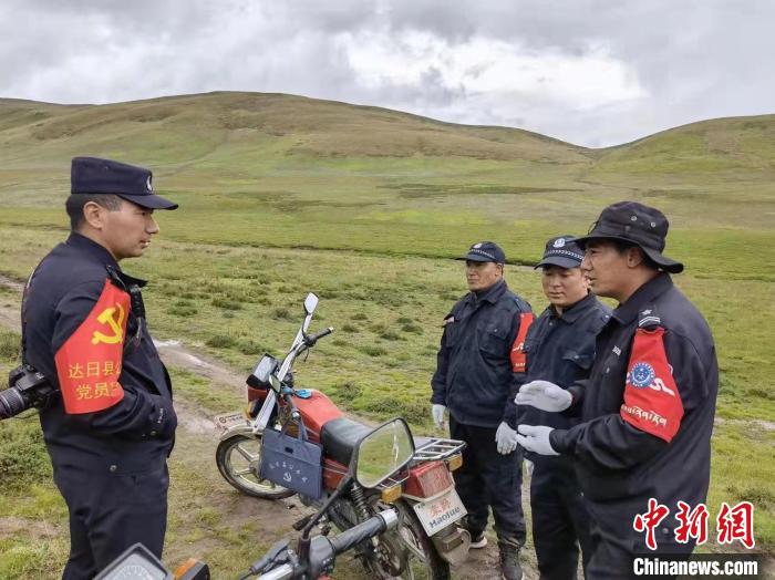 圖為“哈達義警”在進行河流巡護工作?!∏嗪JM掌鄉(xiāng)派出所供圖
