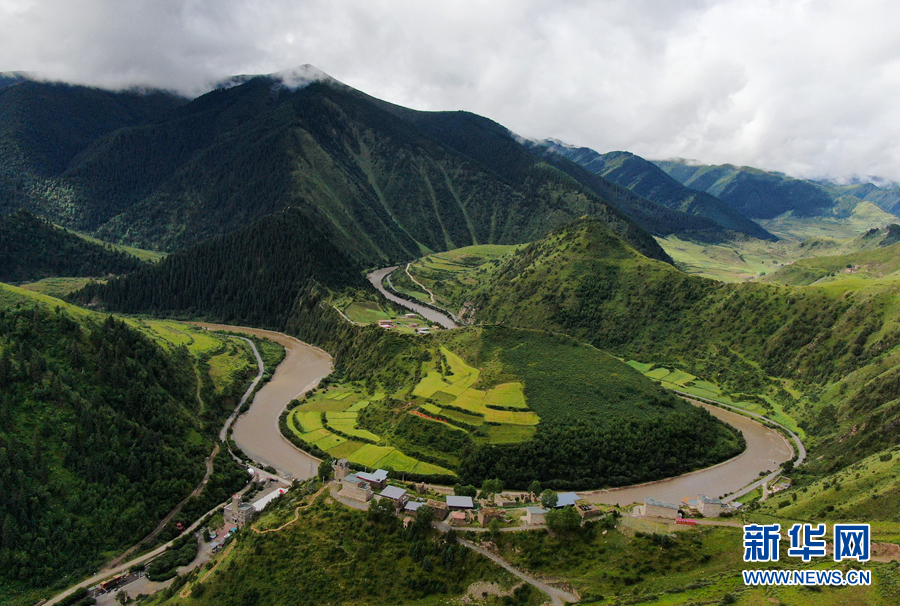 在青海省果洛藏族自治州班瑪縣境內(nèi)拍攝的瑪可河(無(wú)人機(jī)照片)。新華社記者 張龍 攝