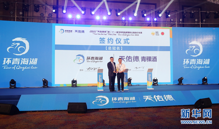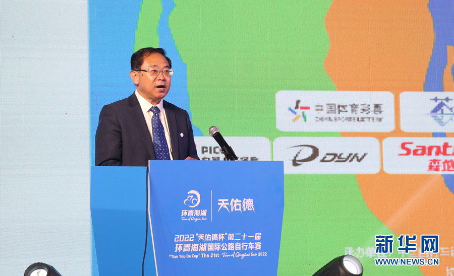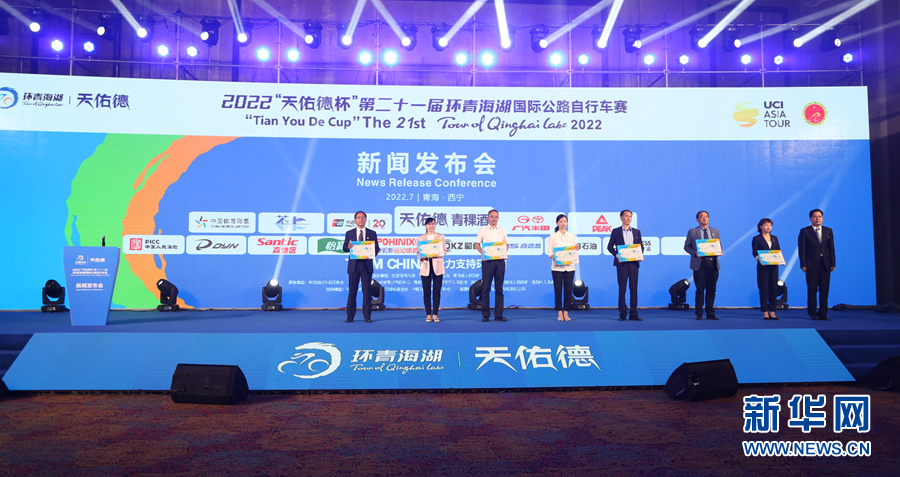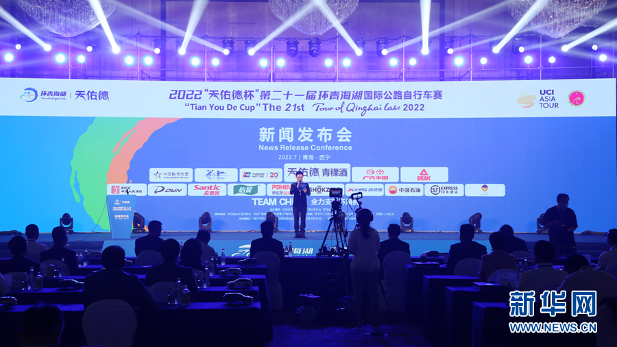 2022第二十一屆環(huán)青海湖國際公路自行車賽新聞發(fā)布會(huì)現(xiàn)場。新華網(wǎng) 卡婭梅朵 攝