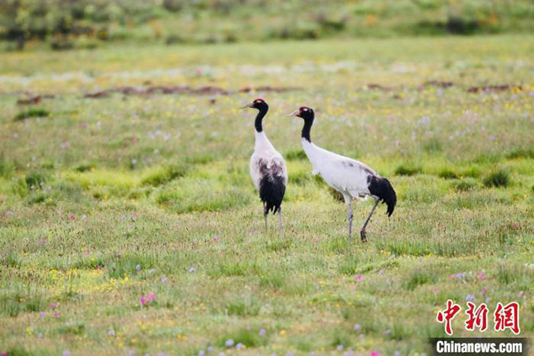 圖為瑪可河國(guó)家濕地公園內(nèi)的黑頸鶴。圖片來(lái)源:班瑪縣委宣傳部