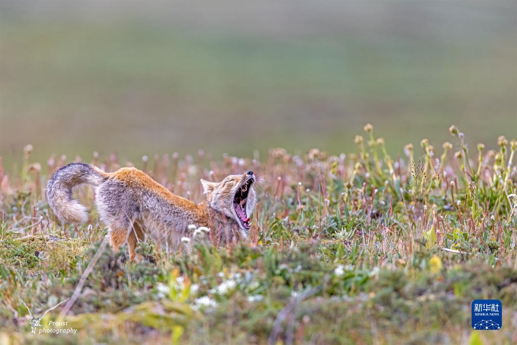 這是在昂賽大峽谷內(nèi)拍攝的藏狐(8月6日攝)。新華社 張戈 攝