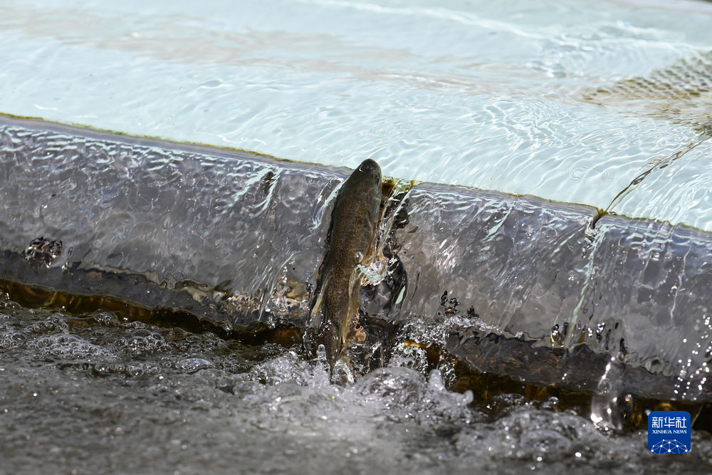 2022年6月30日,在青海省海北藏族自治州剛察縣泉吉河內(nèi),湟魚躍起向上洄游。新華社記者 范培珅 攝