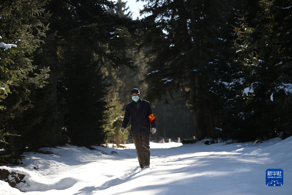 2022年11月23日,護(hù)林員在西寧市大通回族土族自治縣東峽林場(chǎng)內(nèi)巡護(hù)。新華社記者 張龍 攝