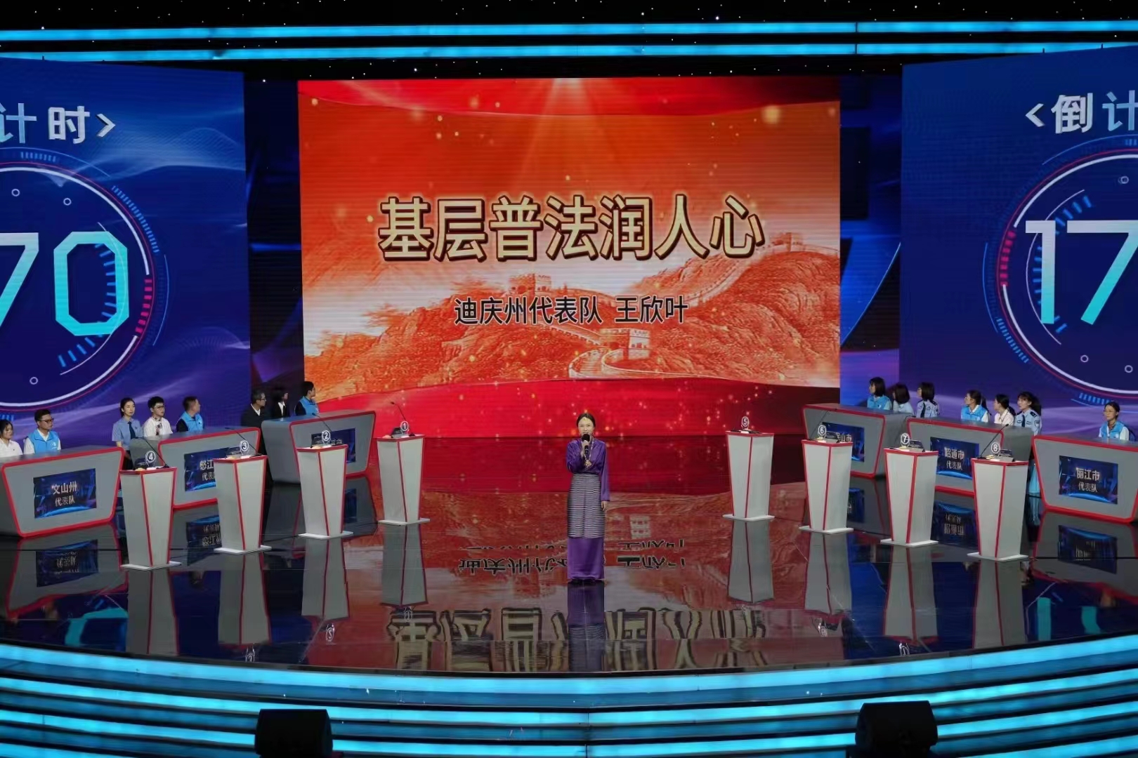 據(jù)悉,此次活動由云南省委宣傳部、省委政法委、省司法廳、省社科聯(lián)等11家單位主辦,將開展近300項重點活動,推進法治宣傳進農(nóng)村、進社區(qū)、進校園、進機關、進企業(yè)、進軍營、進網(wǎng)絡。此次“普法強基在行動·爭做法律明白人”全民學法大賽全省16個州市組隊參加,每支參賽隊由村(社區(qū))法律明白人、鄉(xiāng)鎮(zhèn)中小學教師、擔任鄉(xiāng)鎮(zhèn)中小學法治副校長的基層政法干警各1人組成。經(jīng)過各州市選拔賽和半決賽的激烈角逐,共決出8支隊伍進入電視總決賽。決賽包含必答題、挑戰(zhàn)答題、兩隊對戰(zhàn)、風險題、演講賽五個環(huán)節(jié)。