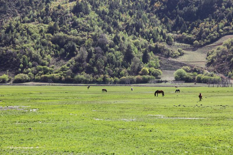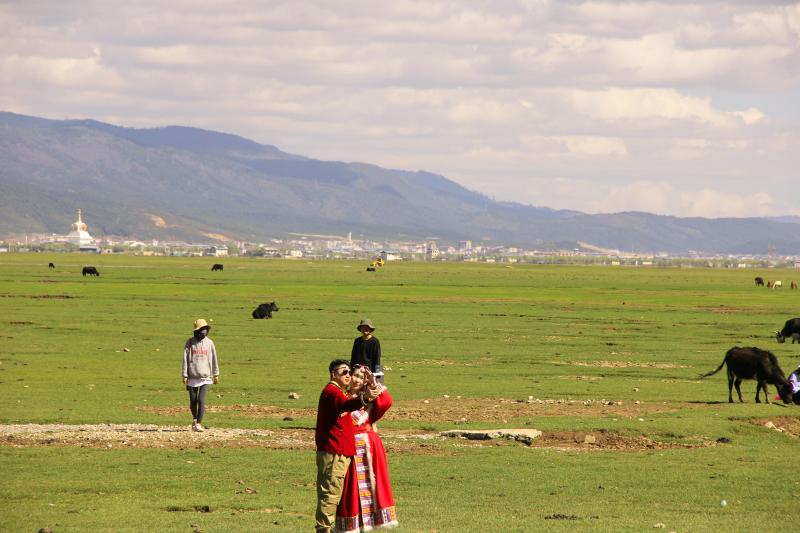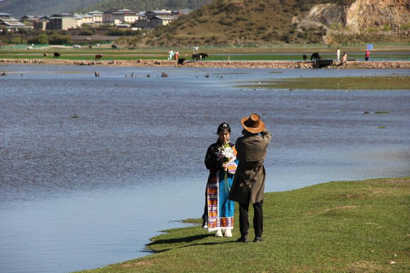 伴隨著立夏過后的第一場雨雪,迪慶高原綠意更濃。納帕海湖畔更添一分高原夏日氣息,碧藍的湖水、翠綠的草原和自由行走在草原上的牛羊是高原獨特的風景線。深深吸引著來自五湖四海的游人駐足觀賞。雖然“五一”假期已過,但前往納帕海游玩的游客并沒有減少,不少游客表示是特意前往這里感受草原風光、拍照留念的。