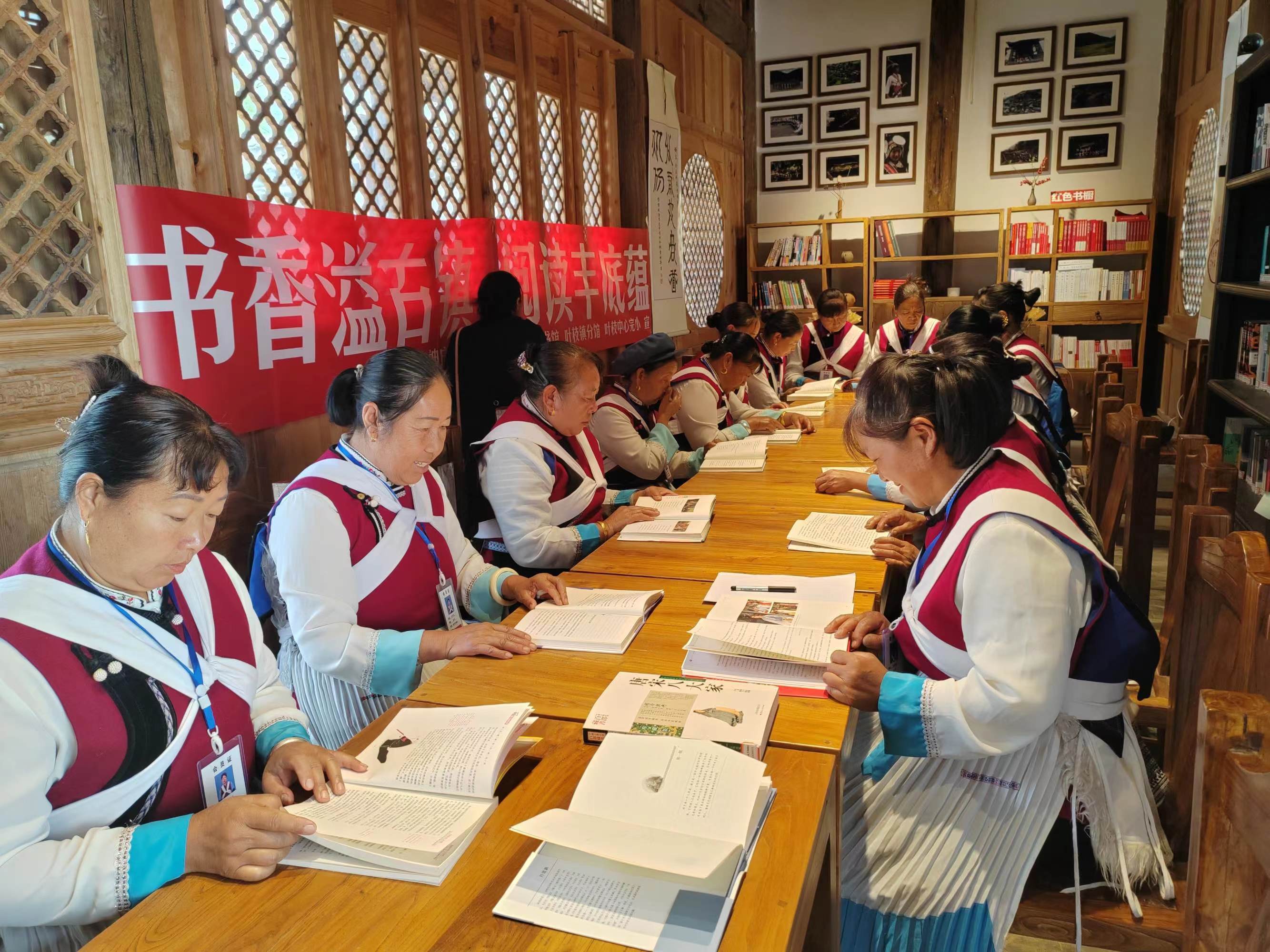 活動現(xiàn)場熱鬧非凡,同樂村文化活動廣場主席臺前整齊地陳列著捐贈的圖書、展示的“花臘裱”等非遺產(chǎn)品,上百名群眾身著民族盛裝參與全民閱讀宣傳活動和非遺展演展示活動?;顒又校輬D書館向同樂村捐贈了價值13000多元的圖書,并號召大家要養(yǎng)成愛讀書、讀好書、善讀書的習(xí)慣,從當(dāng)?shù)氐姆俏镔|(zhì)文化遺產(chǎn)中汲取傳統(tǒng)精粹,在讀書學(xué)習(xí)中汲取精神營養(yǎng),努力促進(jìn)鄉(xiāng)村文化振興。