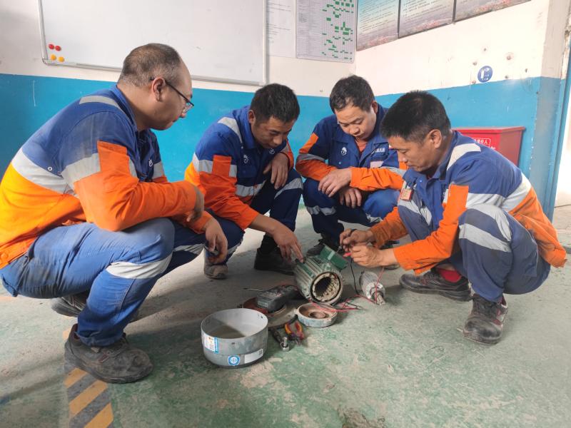 華新水泥(迪慶)有限公司電修班組現(xiàn)有電修人員10人,其中僅有3人為建廠時期就入廠的老員工,電修班組成員多為中專及小學(xué)學(xué)歷。許多員工剛剛進(jìn)入班組的時候都是“門外漢”,在學(xué)歷參差不齊、技術(shù)良莠不一的情況下,班組把“傳幫帶”作為提升技能的關(guān)鍵一招,堅持“老帶新幫助”“一對一指導(dǎo)”“手把手教學(xué)”,從一個零件到一個操作流程,從規(guī)章制度到安全生產(chǎn),“師傅們”都耐心細(xì)致、毫無保留地傳授。而“徒弟們”遇到解不開的問題和現(xiàn)場工作中的難題,都虛心地向師傅們請教。正是在這種濃厚的“傳幫帶”氛圍下,班組的技術(shù)攻堅能力突飛猛進(jìn)。