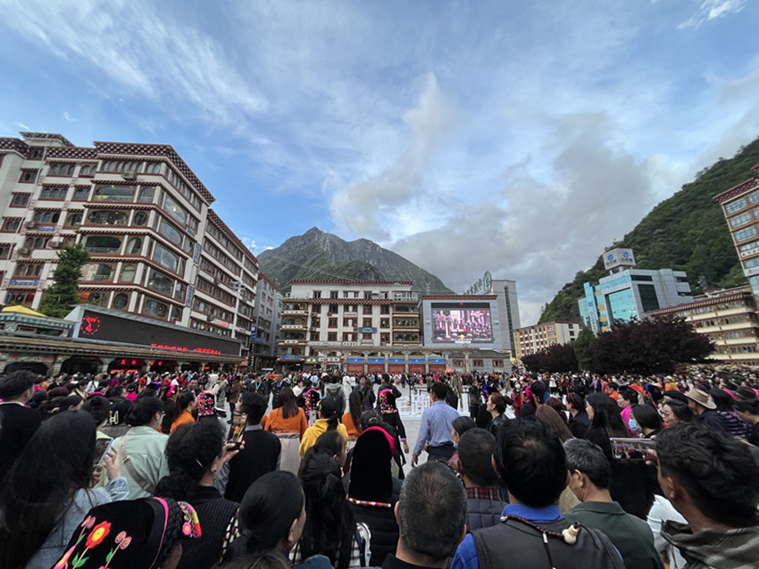 5月26日傍晚,康定情歌廣場(chǎng)的千人鍋莊將“四月八”跑馬山轉(zhuǎn)山會(huì)的熱烈氣氛推向了高潮。