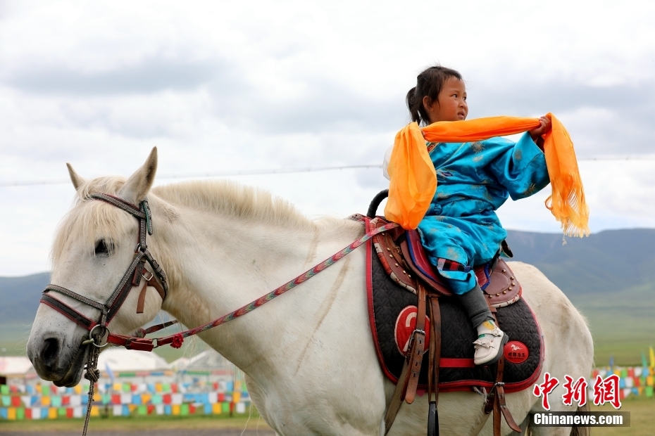 7月14日,在青海省海北藏族自治州海晏縣西海鎮(zhèn),當(dāng)?shù)鼐用駬]舞哈達(dá)迎接車隊(duì)到來。當(dāng)日,2023第二十二屆環(huán)青海湖國(guó)際公路自行車賽迎來第六賽段:祁連至西海鎮(zhèn)的比賽。這也是本屆賽事的最長(zhǎng)賽段,賽段全長(zhǎng)206公里。