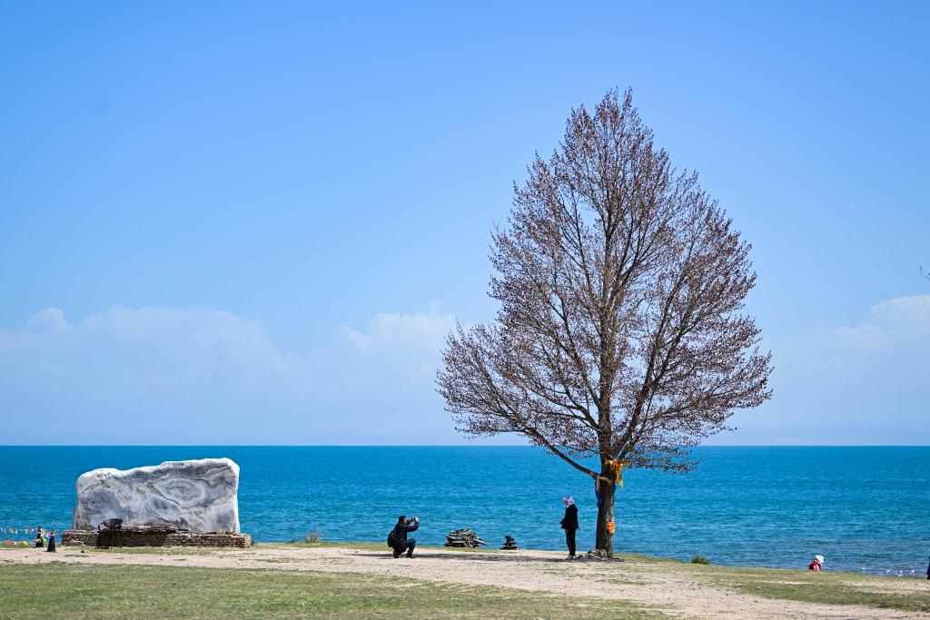 5月18日,在青海湖二郎劍景區(qū),游客在拍照。新華社記者 張龍 攝