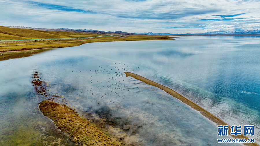 秋日清晨,位于有“千湖之縣”之稱的青海省果洛藏族自治州瑪多縣境內(nèi)的冬格措納湖湖水湛藍(lán)、天空遼闊,湖畔草地綠黃交融,靜美迷人。