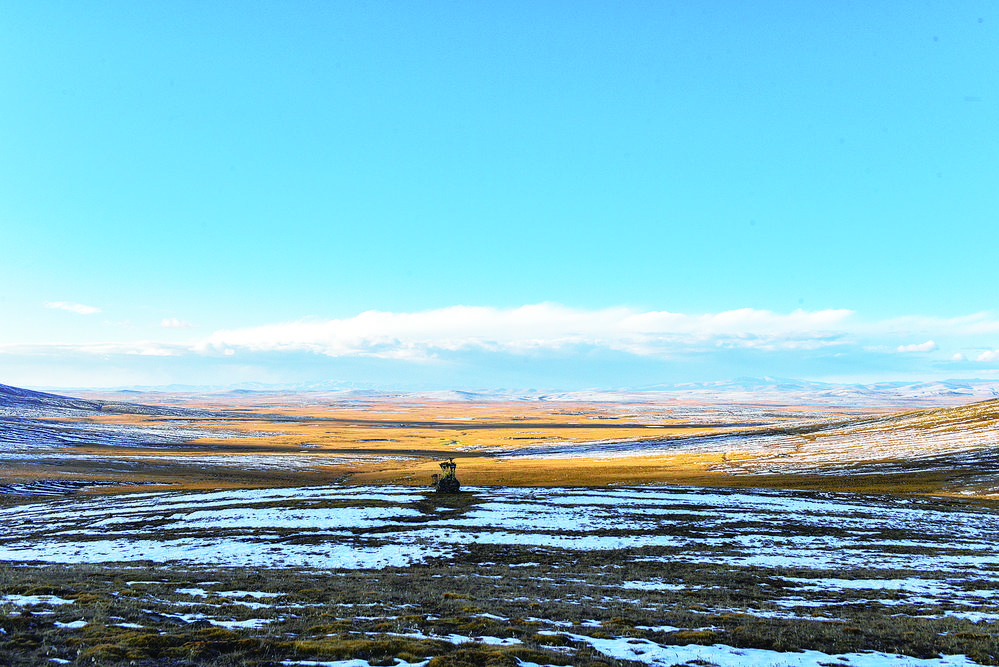 還未入冬,平均海拔5000米的約古宗列曲黃河源頭附近的草原上已經(jīng)飄起了雪,一頂帳篷孤零零地坐落在這里。