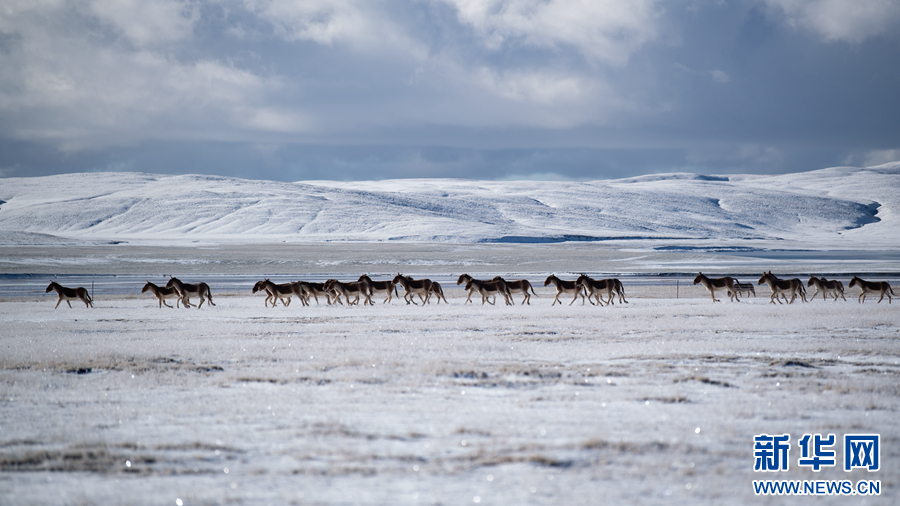 在三江源國家公園黃河源園區(qū)內(nèi)活動的藏野驢。新華網(wǎng) 潘彬彬 攝