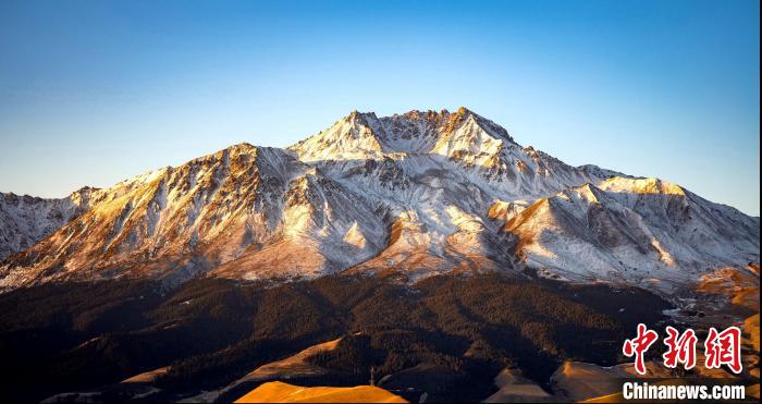 圖為祁連縣境內(nèi)牛心山被陽(yáng)光映照的金黃。包雷 攝