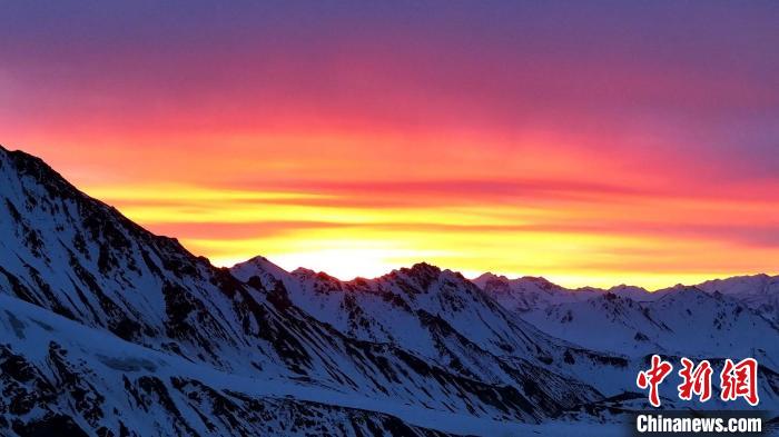 冬日高原,寒風(fēng)蕭瑟。近日,攝影師在位于祁連山腹地的青海省海北藏族自治州祁連縣和門源縣境內(nèi),用鏡頭記錄下祁連山多彩壯麗的日出景觀。清晨,祁連山的雪線之上,銀白的曙光漸漸顯出緋紅,朝霞映在每一個(gè)山巒,祁連縣民眾眼中的“神山”牛心山,在朝霞的映襯下純凈透徹。門源縣境內(nèi)的崗什卡雪峰在晨曦中逐漸顯露“面容”,天空也在陽(yáng)光的照射下顯得多彩夢(mèng)幻,連綿的祁連山在此刻盡顯磅礴氣勢(shì)。