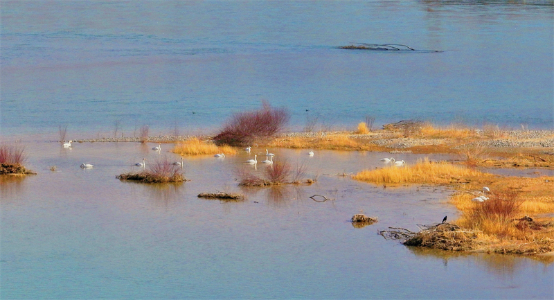 成群的大天鵝在水面上游弋。宋忠勇 攝