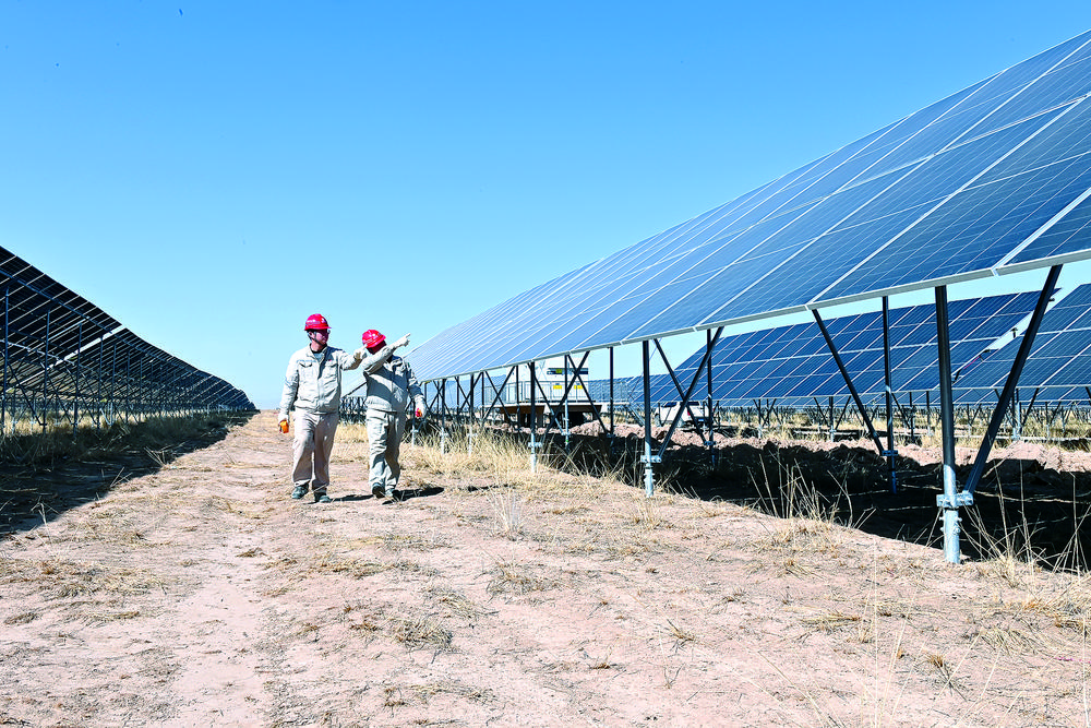 運(yùn)維員在光伏項(xiàng)目現(xiàn)場(chǎng)進(jìn)行定期巡檢工作。陸廣濤 攝