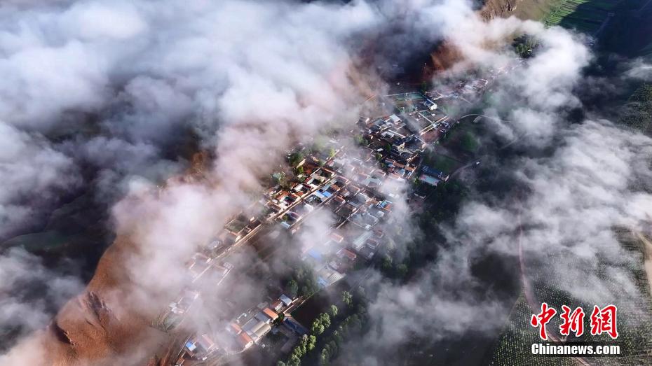 6月,攝影愛(ài)好者拍攝到的祁連山腹地青海省海北藏族自治州祁連縣云霧繚繞,云海與雪山、峽谷、森林交相輝映,蔚為壯觀。畫(huà)面中,云層飄浮在群山之間,時(shí)而薄如輕紗,時(shí)而團(tuán)若棉絮,形成了美麗的低空云海,山間小城在薄云繚繞下,若隱若現(xiàn),宛若仙境。圖為祁連山腹地現(xiàn)低空云海。(無(wú)人機(jī)照片)楊春麗 攝