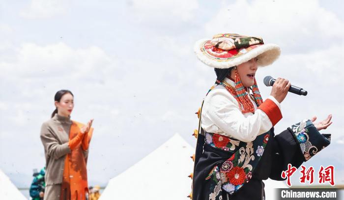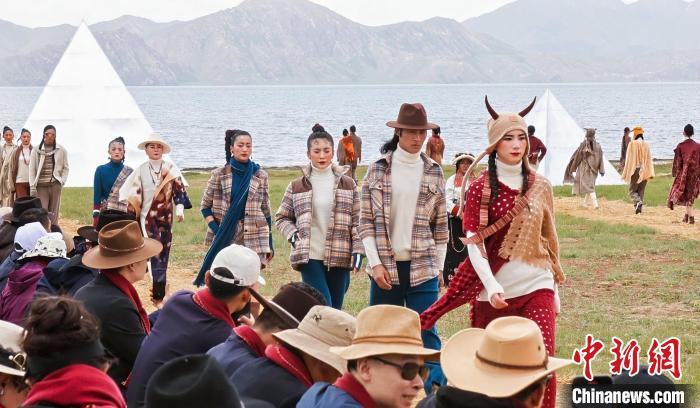 28日,黃河之源·果洛牦牛絨時(shí)裝秀在青海省果洛藏族自治州海拔約4200米的冬格措納湖畔舉行。