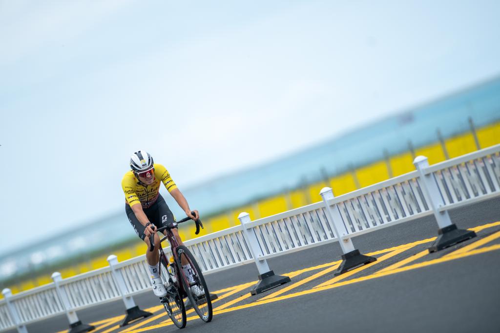 7月11日,比利時(shí)塔特雷托-艾索雷斯車隊(duì)車手阿恩·桑蒂在比賽中騎行。新華社 潘彬彬 攝