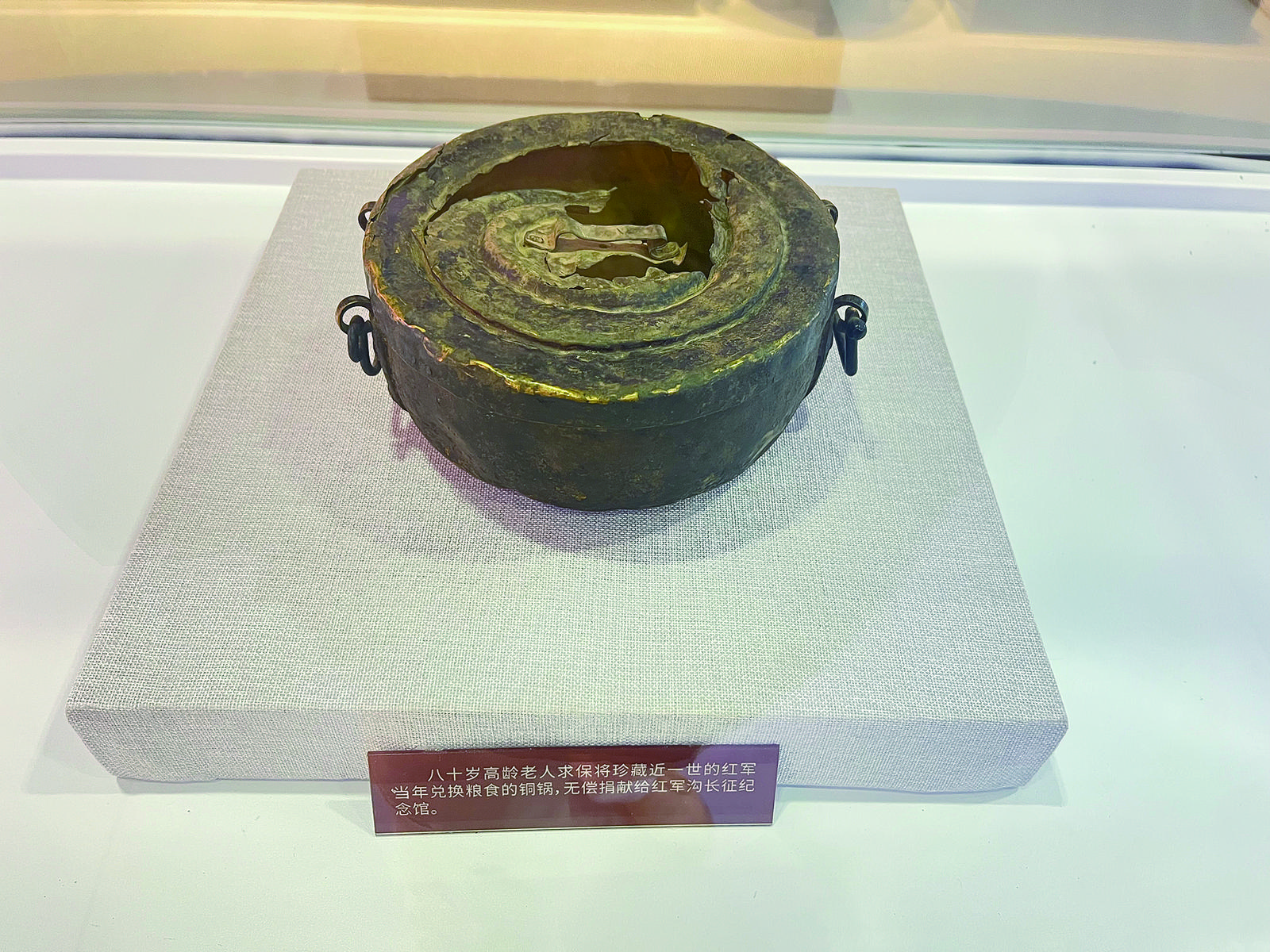 紅軍溝紀(jì)念館內(nèi)陳列的銅鍋。