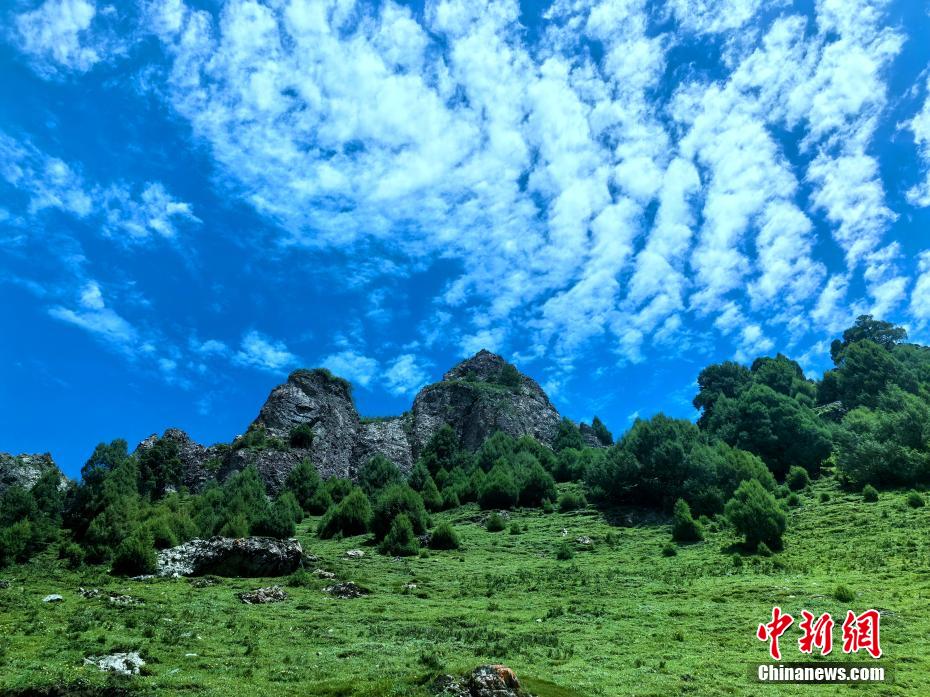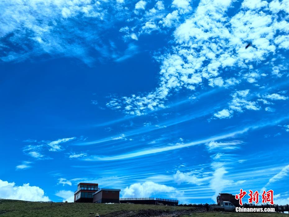 夏入三伏,記者在青海省海北藏族自治州祁連縣境內(nèi)的天境山山巔,拍攝到祁連山腹地云霧繚繞,云彩在藍(lán)天上“擺”出不同造型,甚是迷人,讓人不禁想吟唱“向云端”。每年的7月至9月是祁連風(fēng)景的最佳觀賞時(shí)期,“山之宗,水之源,山水共長(zhǎng)天”的景象可盡收眼底,隨手一拍就是一張完美的護(hù)眼桌面。