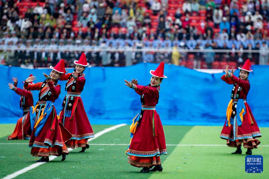 8月8日,在海西蒙古族藏族自治州德令哈市,演員在文藝展演活動(dòng)上表演。新華社 潘彬彬 攝