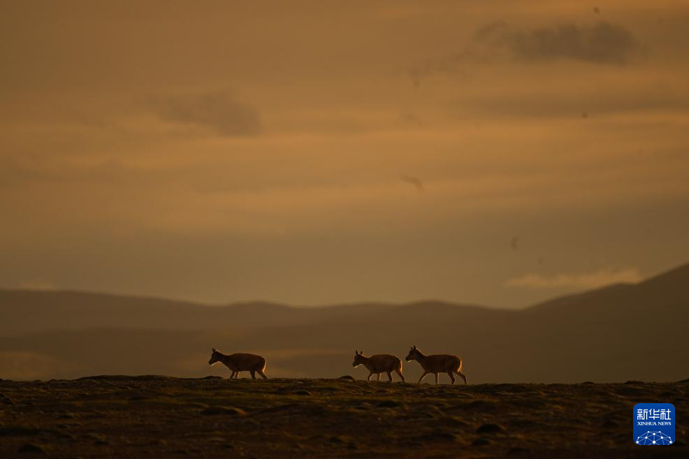 7月7日,在可可西里卓乃湖區(qū)域,藏羚羊在活動。 新華社記者 杜笑微 攝