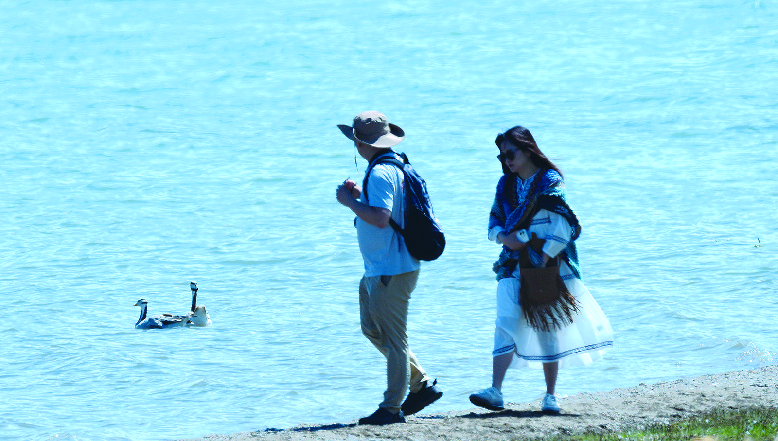 黑馬河敖包觀景點(diǎn)每天的客流量較大,也因此成為了斗格才讓夫妻的重點(diǎn)巡護(hù)區(qū)域。一天,巡護(hù)途中,斗格才讓突然放慢了腳步、壓低了聲音,原來是發(fā)現(xiàn)了一群斑頭雁在湖邊“散步”,他詳細(xì)地記錄到了巡護(hù)日志里。