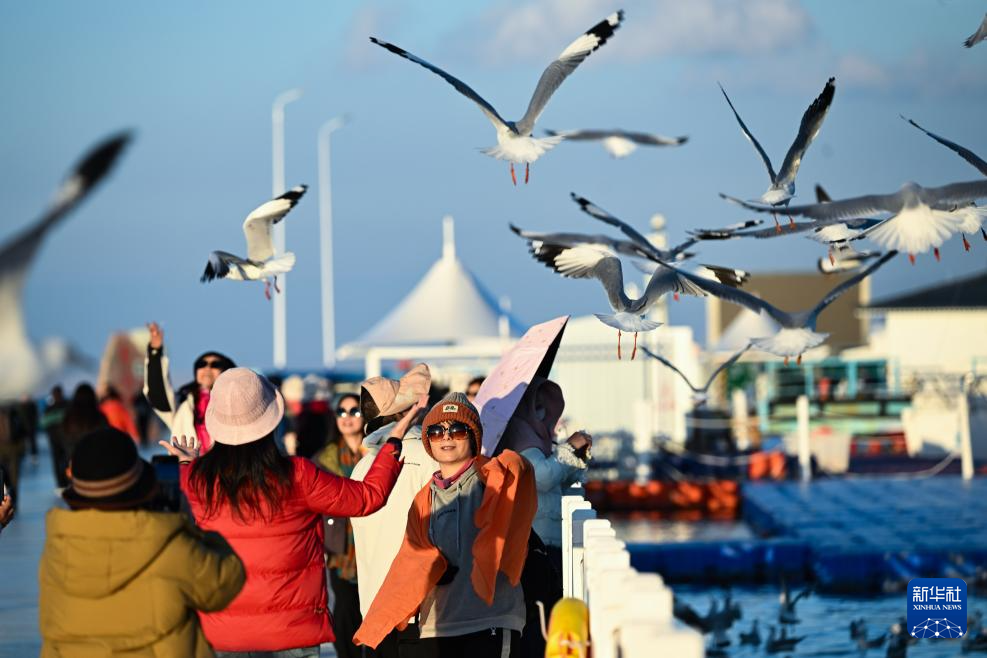 10月18日,游客在青海湖二郎劍景區(qū)游玩。新華社記者 張龍 攝