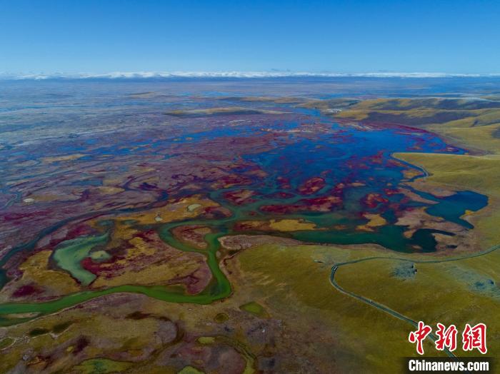 圖為無人機(jī)航拍黃河源頭。(資料圖) 瑪多縣委宣傳部 供圖
