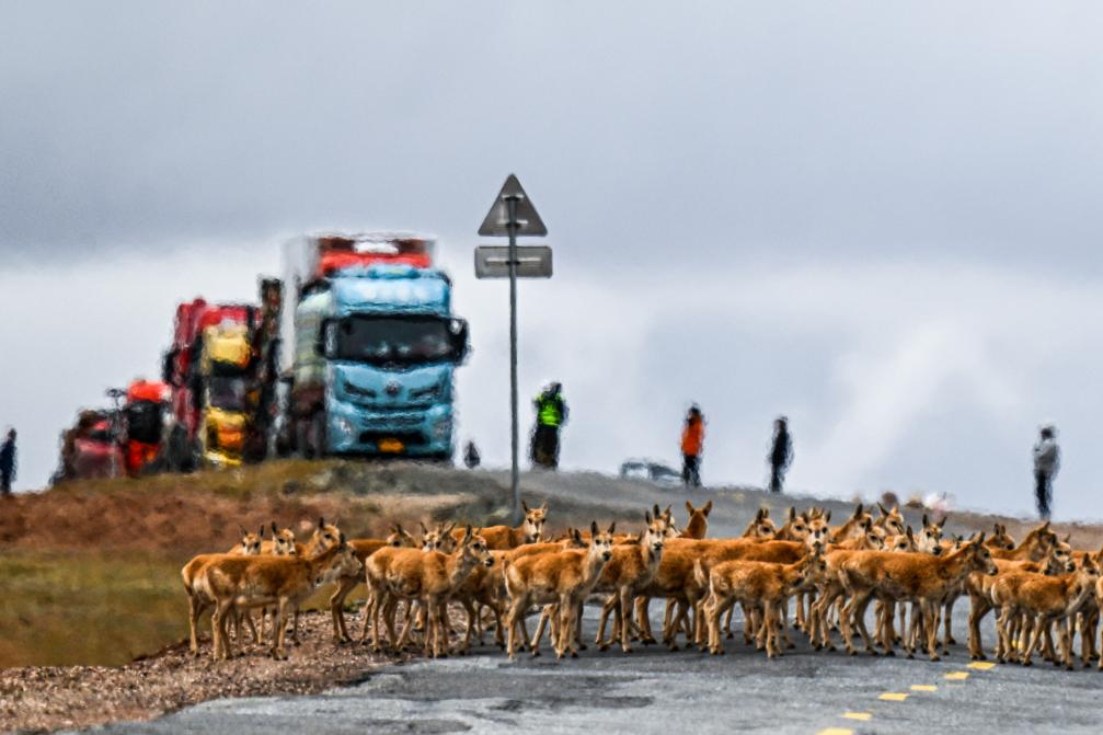 70年過去,青藏公路與可可西里這片土地早已“融為一體”。青藏公路3001、3002公里處,是可可西里藏羚羊遷徙的重要通道。每到藏羚羊遷徙產(chǎn)仔季,在可可西里工作人員的指揮下,來往車輛會在這里自覺排成長龍,在遠(yuǎn)處默默等待,為“高原精靈”讓路。