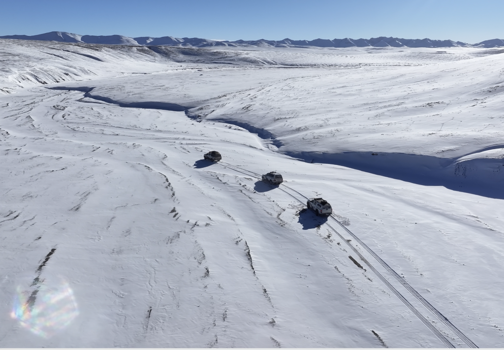 這是除夕的時(shí)候,巡山隊(duì)的車隊(duì)在冰天雪地中巡護(hù)(攝于2024年2月9日)。新華社發(fā)