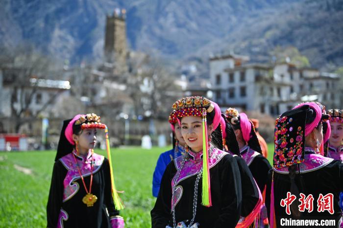 3月25日,四川丹巴,藏寨里一群即將登臺表演的丹巴女孩。中新社記者 劉忠俊 攝