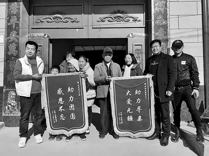 團(tuán)圓儀式上,尋親家庭為志愿者贈(zèng)送錦旗。