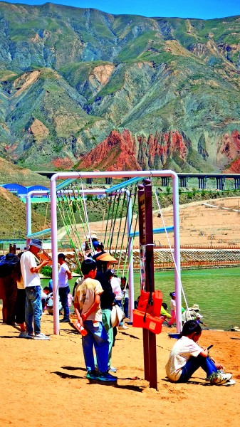德吉村的露天沙灘上,游客正享受高原慢時光。光明圖片 嚴瑞 攝