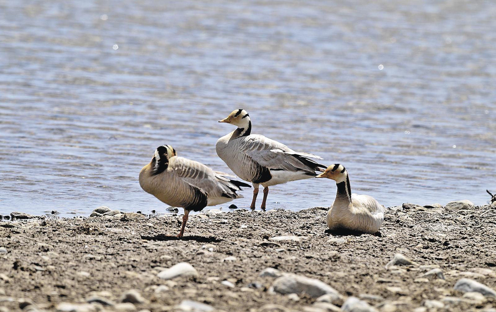 湖畔休憩的斑頭雁。