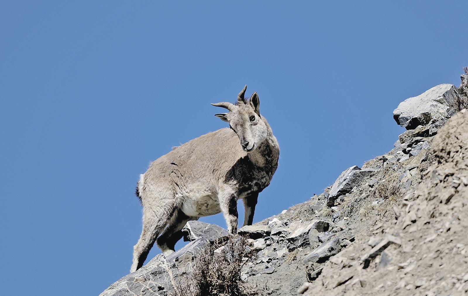 山脊上瞭望的巖羊。