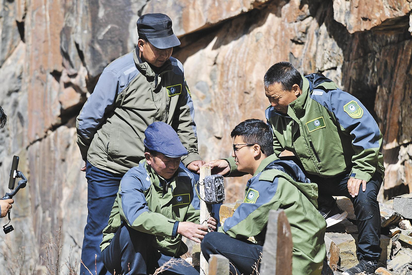 管護員架設(shè)紅外相機。