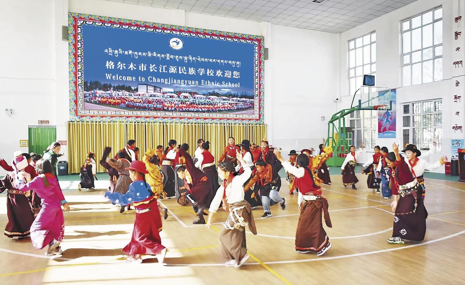 長(zhǎng)江源民族學(xué)校里的歡聲笑語(yǔ)。馬振東 攝