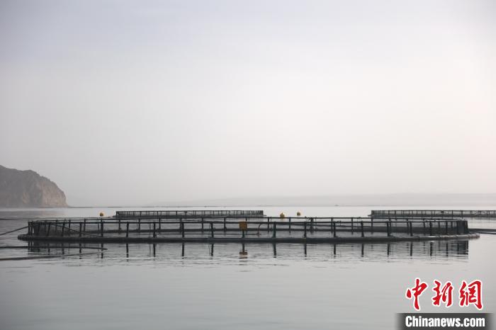 圖為青海省海南藏族自治州龍羊峽水庫(kù)內(nèi)的三文魚(yú)養(yǎng)殖網(wǎng)箱。張海雯攝