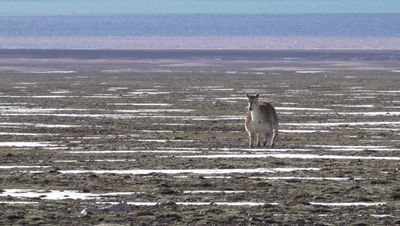 正在埋頭吃草的藏羚羊顯然對這只新來的“伙伴”充滿了好奇,紛紛停止覓食,抬起頭來,打量著這個(gè)有點(diǎn)不一樣的“新人”。很明顯,機(jī)警膽小的藏羚羊只是有點(diǎn)好奇,“新人”的“妝感”并沒有把它們嚇跑。終于,這只有點(diǎn)特殊的“藏羚羊”成功入群,成為卓乃湖畔成千上萬只藏羚羊中的一員。