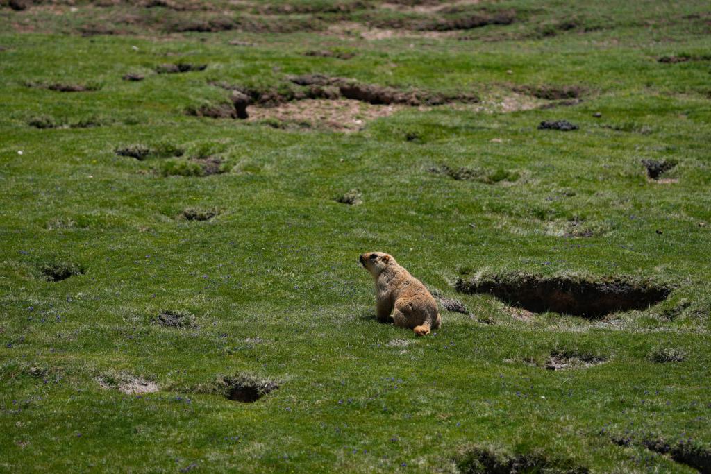 順著地平線看去,一只喜馬拉雅旱獺從洞穴中冒出頭,嗅嗅周邊的氣味,確認(rèn)安全后,探出身子在洞穴周圍尋覓充饑的干草——只是它不知道,如果搬運(yùn)不及時(shí),一些儲(chǔ)存在洞口的干草,將被遷徙而至的藏羚羊順口吃完。