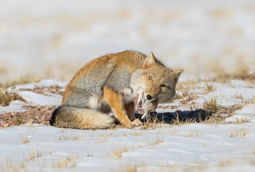 一只藏狐在可可西里五道梁附近捕食鼠兔。新華社發(fā)(孫洪攝)