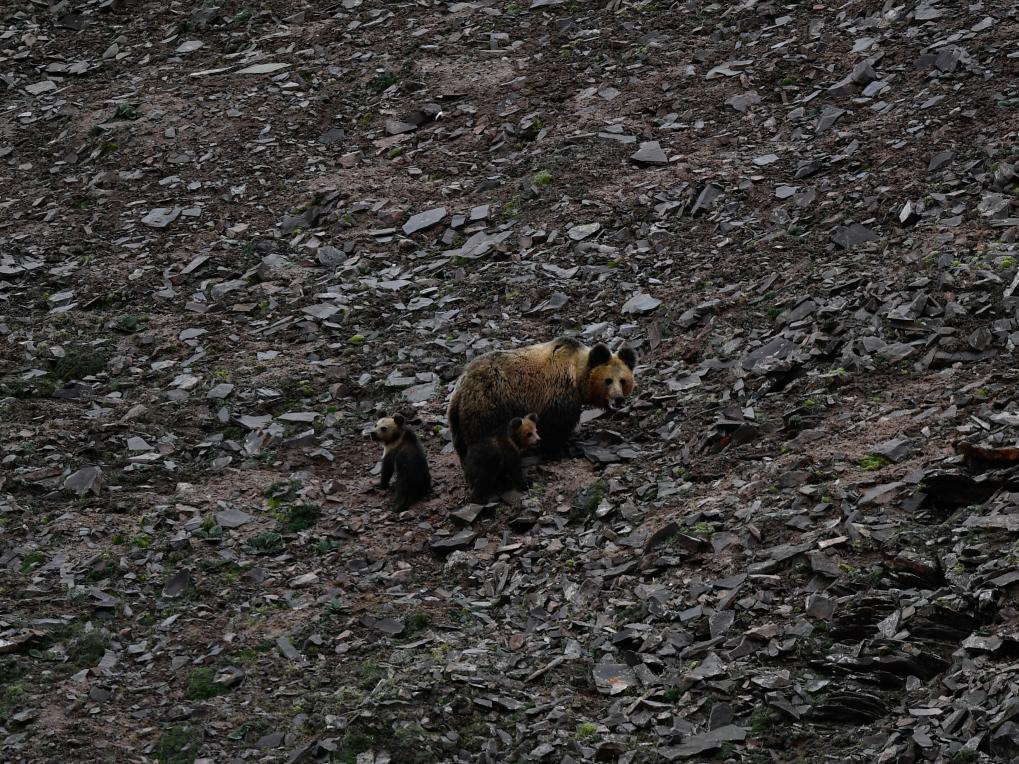 在可可西里卓乃湖區(qū)域拍攝的棕熊。新華社記者 張龍 攝