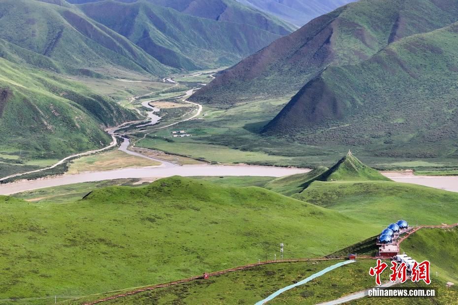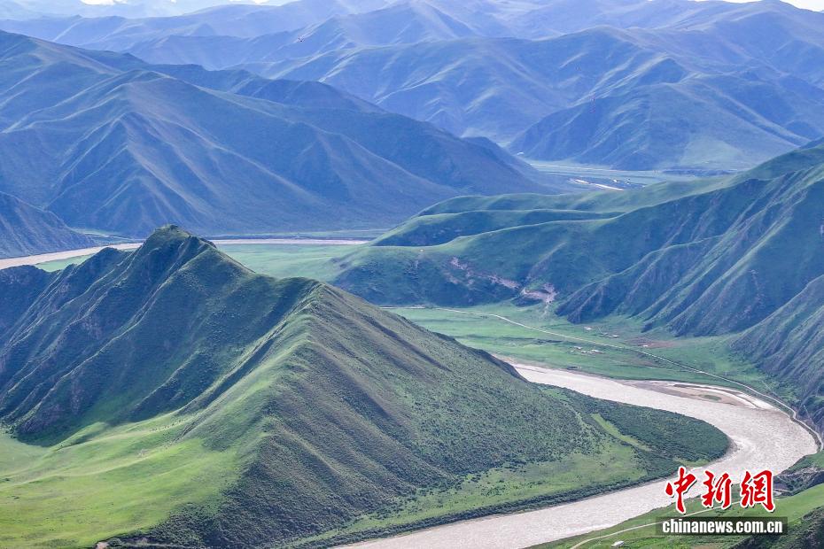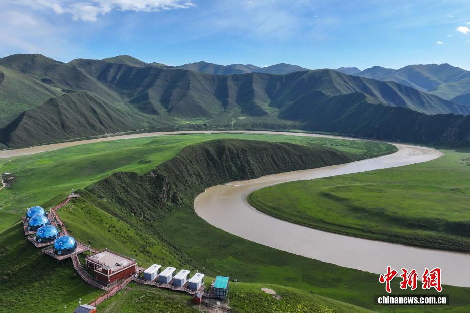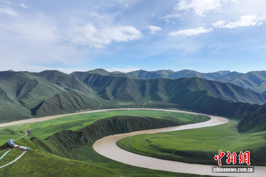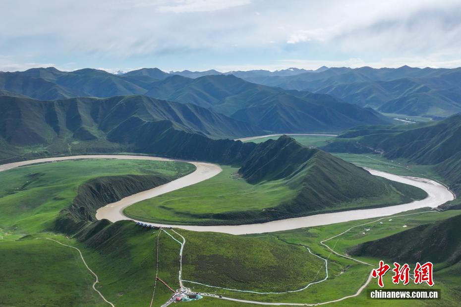 8月14日,航拍位于青海省果洛藏族自治州久治縣境內的黃河女兒灣。久治縣是長江、黃河兩大水系的涵養(yǎng)區(qū),是“中華水塔”的重要組成部分。中新社記者 薛蒂 攝