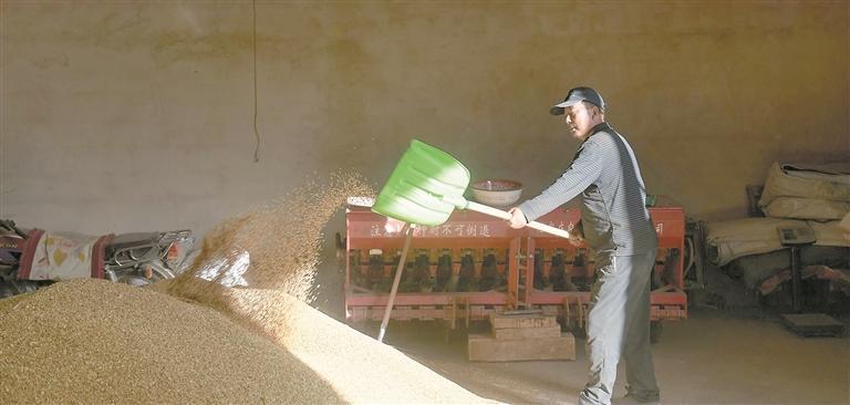 斗格才讓在晾曬糧食。