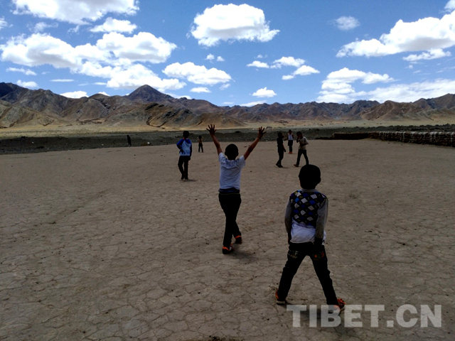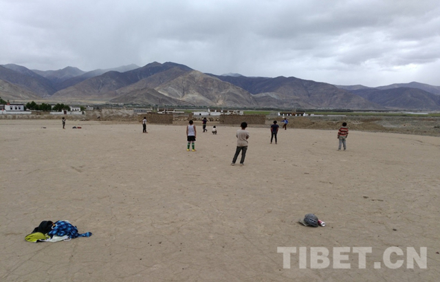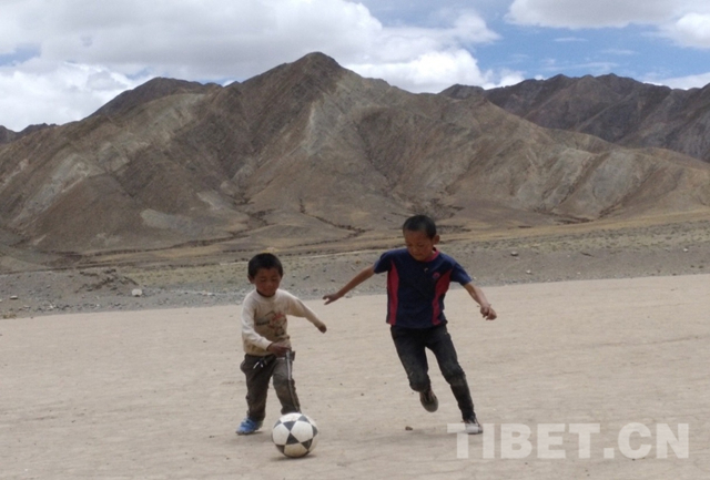 照片里個子最高的就是夏雜小小足球隊的隊長——貢嘎扎西,本以為他會是足球隊的前鋒,誰知他卻是防守的中堅力量——司職后衛(wèi)。今天他可解圍了不少威脅球。前排中間這個剛剛掉了右邊門牙的少年名叫多吉普拉,“別看我牙都沒長齊,但我是前鋒”。在剛剛結(jié)束的這場夏雜村足球賽中獨中兩元,他就是夏雜村足球隊未來的“C羅”。這里——4100米海拔的“魔鬼主場”就是他們的主場。